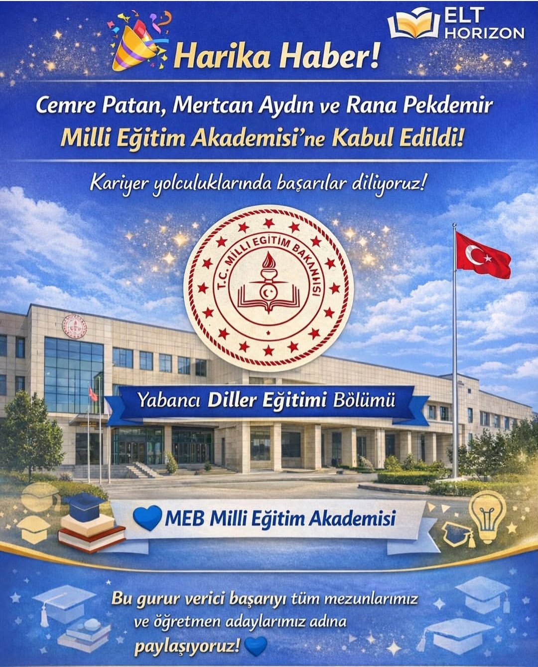 2024-2025 Mezunlarımızdan Mertcan Aydın, Miraç Cemre Patan ve Rana Pekdemir AGS başarılarından ötürü Milli Eğitim Akademisine girmeye hak kazandı. Tebrik ediyoruz!